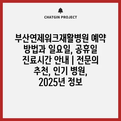 부산연제워크재활병원 예약 방법과 일요일, 공휴일 진료시간 공지 | 전연락 추천, 인기 병원, 2025년 정보 에 대해 자주 묻는 질문 TOP 5