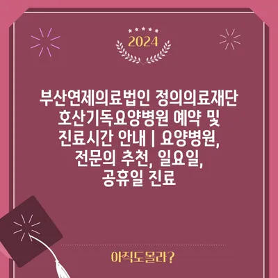 부산연제의료법인 정의의료재단 호산기독요양병원 예약 및 진료시간 공지 | 요양병원, 전연락 추천, 일요일, 공휴일 진료 에 대해 자주 묻는 질문 TOP 5
