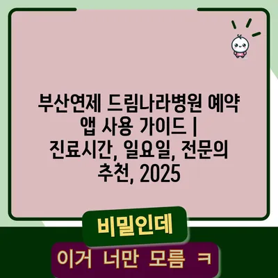 부산연제 드림나라병원 예약 앱 사용 설명서 | 진료시간, 일요일, 전연락 추천, 2025