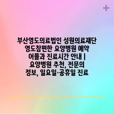 부산영도의료법인 성원의료재단 영도참편한 요양병원 예약 어플과 진료시간 공지 | 요양병원 추천, 전연락 정보, 일요일·공휴일 진료 에 대해 자주 묻는 질문 TOP 5