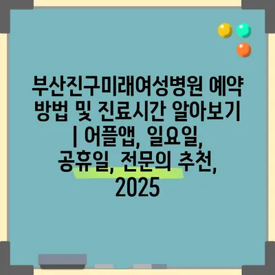 부산진구미래여성병원 예약 방법 및 진료시간 알아보기 | 어플앱, 일요일, 공휴일, 전연락 추천, 2025 에 대해 자주 묻는 질문 TOP 5