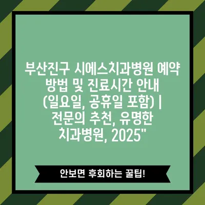 ✅ 부산진구 시에스치과병원 예약 방법과 혜택을 자세히 알아보세요.