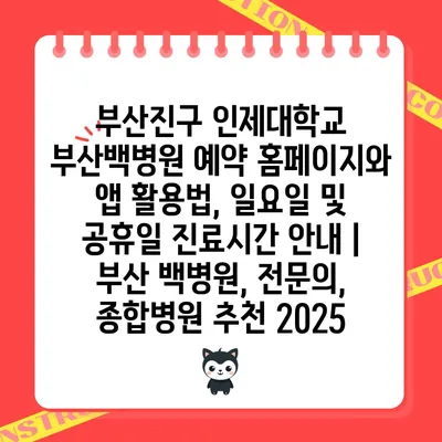 부산진구 인제대학교 부산백병원 예약 홈페이지와 앱 활용법, 일요일 및 공휴일 진료시간 공지 | 부산 백병원, 전연락, 종합병원 추천 2025 에 대해 자주 묻는 질문 TOP 5