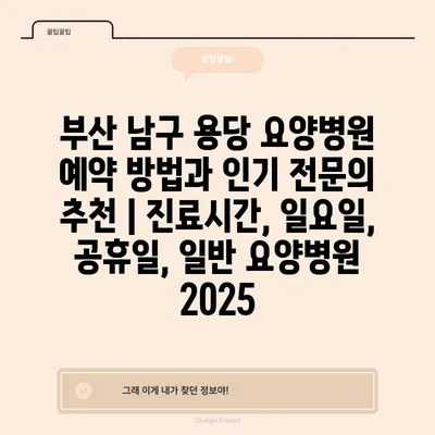 부산 남구 용당 요양병원 예약 방법과 인기 전연락 추천 | 진료시간, 일요일, 공휴일, 일반 요양병원 2025에 대해 알아보겠습니다.