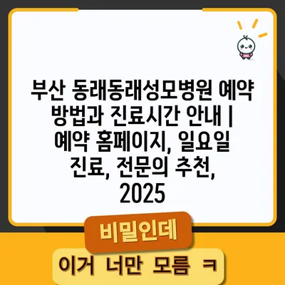부산 동래동래성모병원 예약 방법과 진료시간 공지 | 예약 홈페이지, 일요일 진료, 전연락 추천, 2025