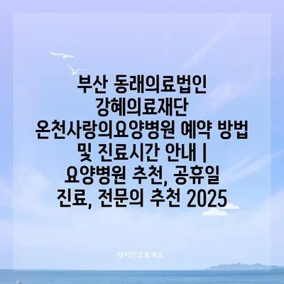 부산 동래의료법인 강혜의료재단 온천사랑의요양병원 예약 방법 및 진료시간 공지 | 요양병원 추천, 공휴일 진료, 전연락 추천 2025 에 대해 자주 묻는 질문 TOP 5
