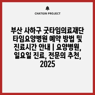 부산 사하구 굿타임의료재단 타임요양병원 예약 방법 및 진료시간 공지 | 요양병원, 일요일 진료, 전연락 추천, 2025 에 대해 자주 묻는 질문 TOP 5