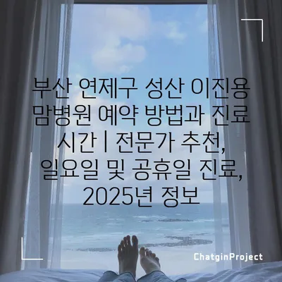 부산 연제구 성산 이진용 맘병원 예약 방법과 진료 시간 | 전문가 추천, 일요일 및 공휴일 진료, 2025년 정보 에 대해 자주 묻는 질문 TOP 5