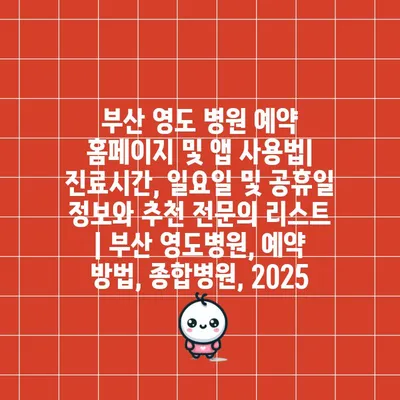 부산 영도 병원 예약 홈페이지 및 앱 사용법| 진료시간, 일요일 및 공휴일 정보와 추천 전문의 리스트 | 부산 영도병원, 예약 방법, 종합병원, 2025