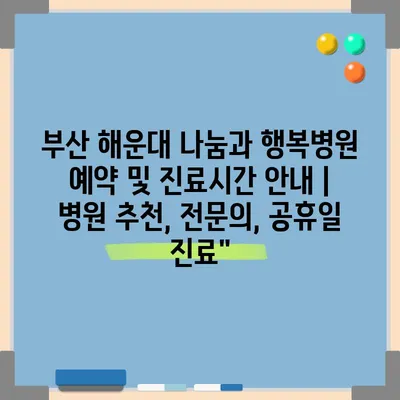 ✅ 해운대 나눔과 행복병원의 진료 시간과 예약 방법을 자세히 알아보세요.