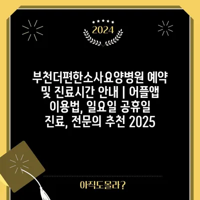 부천더편한소사요양병원 예약 및 진료시간 안내 | 어플앱 이용법, 일요일 공휴일 진료, 전문의 추천 2025