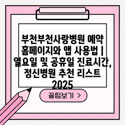부천부천사랑병원 예약 홈페이지와 앱 사용법 | 일요일 및 공휴일 진료시간, 정신병원 추천 리스트 2025에 대해 알아보겠습니다.
