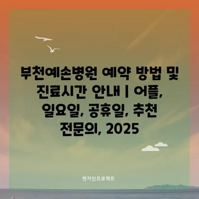 부천예손병원 예약 방법 및 진료시간 공지 | 어플, 일요일, 공휴일, 추천 전연락, 2025에 대해 자주 묻는 질문 TOP 5