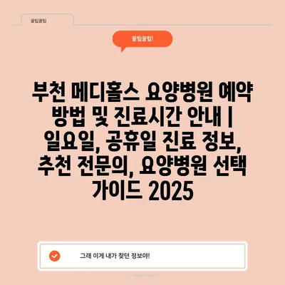 부천 메디홀스 요양병원 예약 방법 및 진료시간 안내 | 일요일, 공휴일 진료 정보, 추천 전문의, 요양병원 선택 가이드 2025