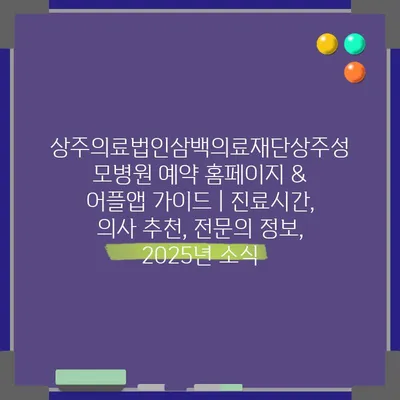 상주의료법인삼백의료재단상주성모병원 예약 홈페이지 & 어플앱 설명서 | 진료시간, 의사 추천, 전연락 정보, 2025년 소식에 대해 소개합니다.
