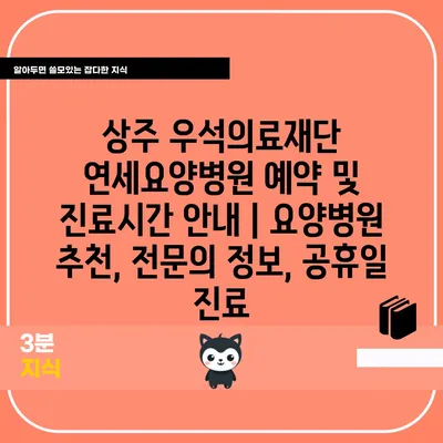 ✅ 상주 우석의료재단 연세요양병원의 예약 방법과 절차를 알아보세요.