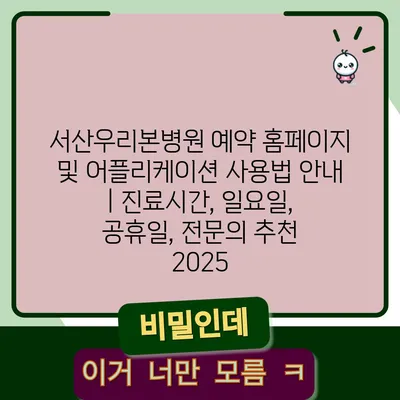 서산우리본병원 예약 홈페이지 및 어플리케이션 사용법 안내 | 진료시간, 일요일, 공휴일, 전문의 추천 2025