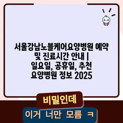 서울강남노블케어요양병원 예약 및 진료시간 공지 | 일요일, 공휴일, 추천 요양병원 정보 2025 에 대해 자주 묻는 질문 TOP 5