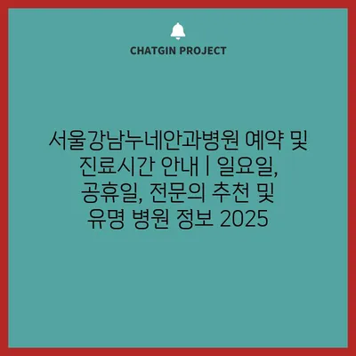 서울강남누네안과병원 예약 및 진료시간 공지 | 일요일, 공휴일, 전연락 추천 및 유명 병원 정보 2025 에 대해 자주 묻는 질문 TOP 5