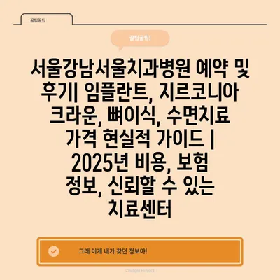 서울강남서울치과병원 예약 및 후기| 임플란트, 지르코니아 크라운, 뼈이식, 수면치료 가격 현실적 설명서 | 2025년 비용, 보험 정보, 신뢰할 수 있는 치료센터에 대한 내용을 알려알려드리겠습니다.