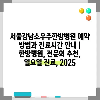 서울강남소우주한방병원 예약 방법과 진료시간 공지 | 한방병원, 전연락 추천, 일요일 진료, 2025 에 대해 자주 묻는 질문 TOP 5