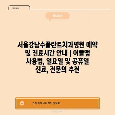 서울강남수플란트치과병원 예약 및 진료시간 공지 | 어플앱 사용법, 일요일 및 공휴일 진료, 전연락 추천 에 대해 자주 묻는 질문 TOP 5