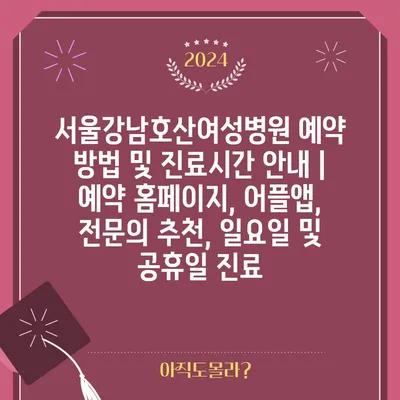 ✅ 서울강남호산여성병원 예약 방법을 자세히 알아보세요.