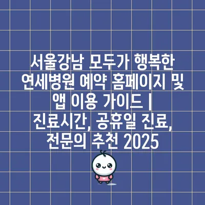 서울강남 모두가 행복한 연세병원 예약 홈페이지 및 앱 이용 설명서 | 진료시간, 공휴일 진료, 전연락 추천 2025 에 대해 자주 묻는 질문 TOP 5