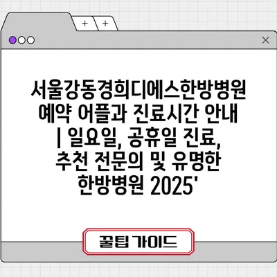 서울강동경희디에스한방병원 예약 어플과 진료시간 공지 | 일요일, 공휴일 진료, 추천 전연락 및 유명한 한방병원 2025′ 에 대해 자주 묻는 질문 TOP 5