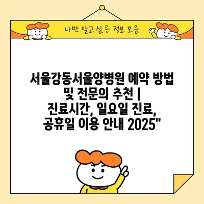 ✅ 서울강동서울양병원의 예약 방법과 진료 정보를 알아보세요.