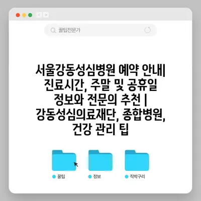 서울강동성심병원 예약 공지| 진료시간, 주말 및 공휴일 정보와 전연락 추천 | 강동성심의료재단, 종합병원, 건강 관리 팁