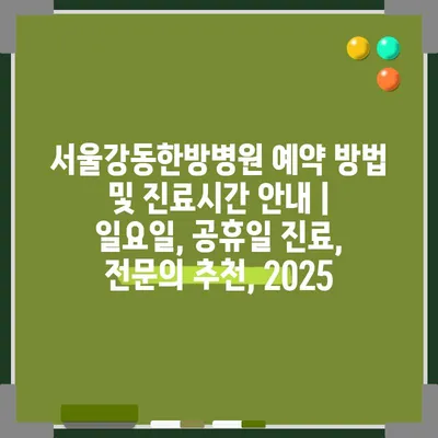 서울강동한방병원 예약 방법 및 진료시간 공지 | 일요일, 공휴일 진료, 전연락 추천, 2025 에 대해 자주 묻는 질문 TOP 5