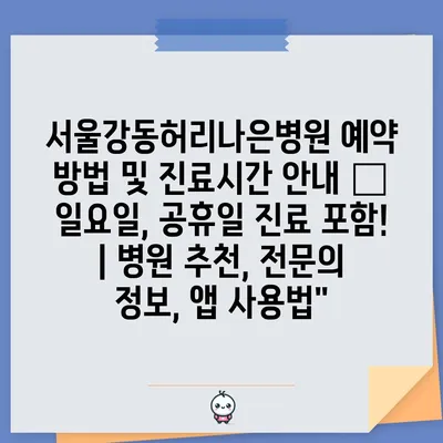 ✅ 서울강동허리나은병원의 진료시간과 예약 방법을 자세히 알아보세요.