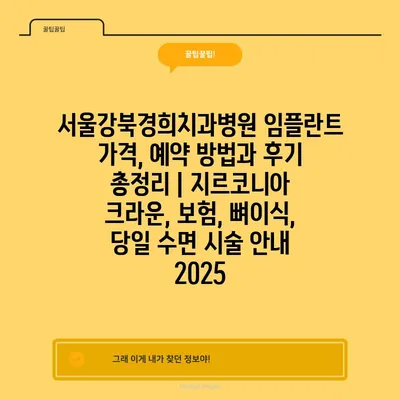 서울강북경희치과병원 임플란트 가격, 예약 방법과 후기 총정리 | 지르코니아 크라운, 보험, 뼈이식, 당일 수면 시술 공지 2025 에 대해 자주 묻는 질문 TOP 5