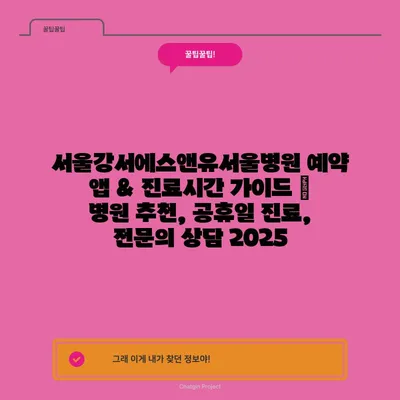 ✅ 서울강서에스앤유서울병원의 진료시간 및 예약 방법을 상세히 알아보세요.