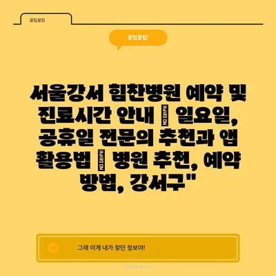 서울강서 힘찬병원 예약 및 진료시간 공지 – 일요일, 공휴일 전연락 추천과 앱 활용법 | 병원 추천, 예약 방법, 강서구” 에 대해 자주 묻는 질문 TOP 5