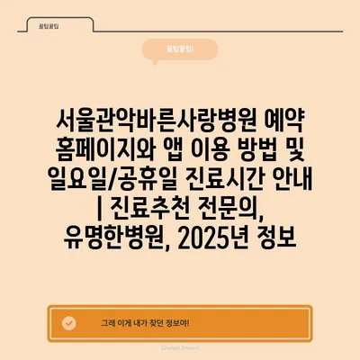 서울관악바른사랑병원 예약 홈페이지와 앱 이용 방법 및 일요일/공휴일 진료시간 공지 | 진료추천 전연락, 유명한병원, 2025년 정보에 대해 자주 묻는 질문 TOP 5