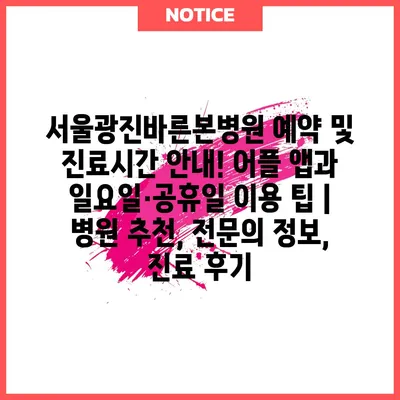 서울광진바른본병원 예약 및 진료시간 안내! 어플 앱과 일요일·공휴일 이용 팁 | 병원 추천, 전문의 정보, 진료 후기