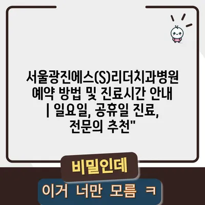 서울광진에스(S)리더치과병원 예약 방법 및 진료시간 안내 | 일요일, 공휴일 진료, 전문의 추천”