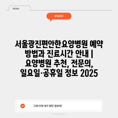 서울광진편안한요양병원 예약 방법과 진료시간 공지 | 요양병원 추천, 전연락, 일요일·공휴일 정보 2025 에 대해 자주 묻는 질문 TOP 5