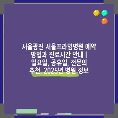 서울광진 서울프라임병원 예약 방법과 진료시간 공지 | 일요일, 공휴일, 전연락 추천, 2025년 병원 정보 에 대해 자주 묻는 질문 TOP 5