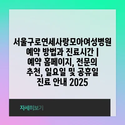 ✅ 서울구로연세사랑모아여성병원의 진료시간과 예약 절차를 알아보세요!