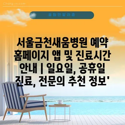 서울금천새움병원 예약 홈페이지 앱 및 진료시간 공지 | 일요일, 공휴일 진료, 전연락 추천 정보
