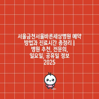 서울금천서울바른세상병원 예약 방법과 진료시간 총정리 | 병원 추천, 전연락, 일요일, 공휴일 정보 2025 에 대해 자주 묻는 질문 TOP 5