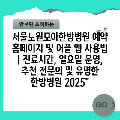 서울노원모아한방병원 예약 홈페이지 및 어플 앱 사용법 | 진료시간, 일요일 운영, 추천 전연락 및 유명한 한방병원 2025″ 에 대해 자주 묻는 질문 TOP 5