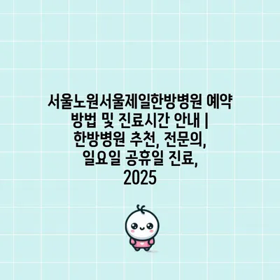 서울노원서울제일한방병원 예약 방법 및 진료시간 공지 | 한방병원 추천, 전연락, 일요일 공휴일 진료, 2025 에 대해 자주 묻는 질문 TOP 5