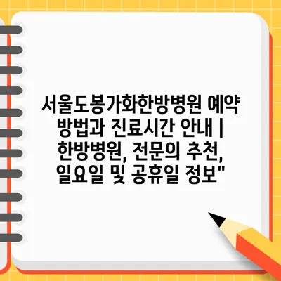 서울도봉가화한방병원 예약 방법과 진료시간 공지 | 한방병원, 전연락 추천, 일요일 및 공휴일 정보에 대해 자주 묻는 질문 TOP 5