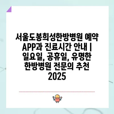 서울도봉희성한방병원 예약 APP과 진료시간 공지 | 일요일, 공휴일, 유명한 한방병원 전연락 추천 2025 에 대해 자주 묻는 질문 TOP 5