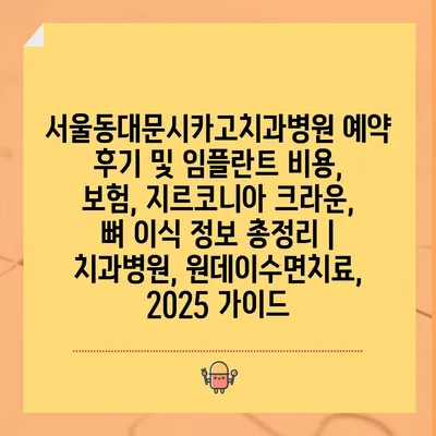 서울동대문시카고치과병원 예약 후기 및 임플란트 비용, 보험, 지르코니아 크라운, 뼈 이식 정보 총정리 | 치과병원, 원데이수면치료, 2025 설명서 에 대해 자주 묻는 질문 TOP 5