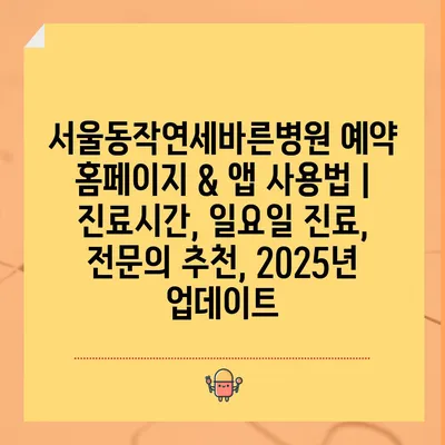 서울동작연세바른병원 예약 홈페이지 & 앱 사용법 | 진료시간, 일요일 진료, 전연락 추천, 2025년 업데이트 에 대해 자주 묻는 질문 TOP 5